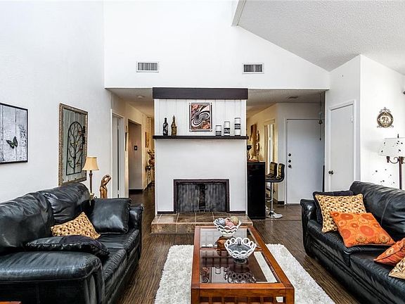 Very well maintained one-story town home that is MOVE IN READY! Kitchen has granite counters, double oven, cooktop and built in desk. Dining room has built ins, wet bar and private patio. Living Room has vaulted ceilings with lots of natural light and wood burning fireplace. Private deck of master bedroom. Two car garage with storage closets. Enjoy the community pool! Centrally located in the DFW area and just minutes from downtown Fort Worth, DFW airport.