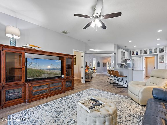 Extensively updated 4-bedroom lakefront home in the highly sought-after Indigo Crossing community of Viera. Major improvements include a 2024 roof with solar tubes, luxury vinyl flooring, fresh interior paint, remodeled baths, and 5'' baseboards. The raised and enclosed Florida room adds valuable living space with impact rated windows and its own AC unit (2023). The kitchen features 42'' shaker cabinets, stainless appliances, expanded lighting, a walk-in pantry, and extra cabinetry for storage. The primary suite offers a beautifully renovated bath and expanded closet. Additional updates include a 2022 water heater, storm door, custom sunroom shade, gutters, and a termite bond (2023). Enjoy a calm lake view in a community offering a pool, park, basketball court, and playground—all within a walk or bike ride or golf cart ride to Viera schools, shopping, and dining.