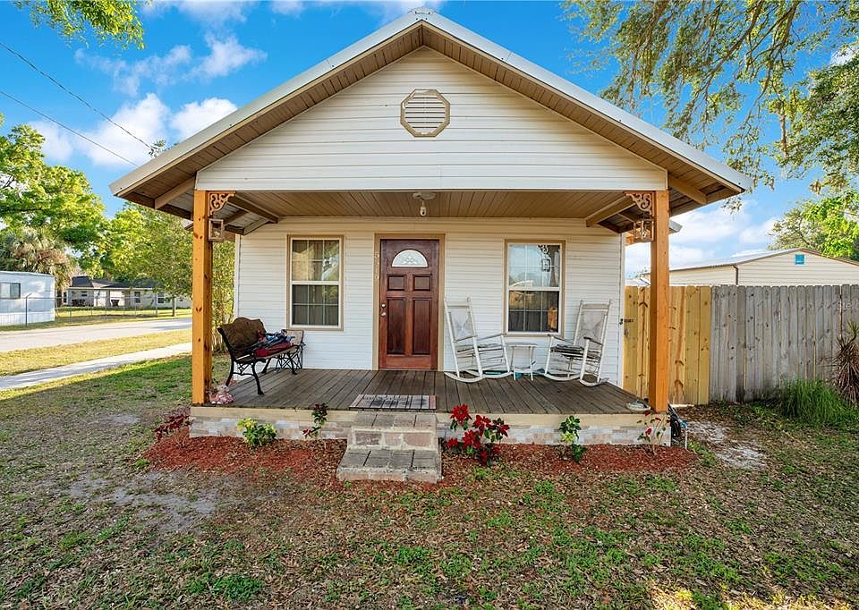 Welcome home to your new delightful three bedroom, one bath, home nestled in the heart of Highland City. The open-plan living room provides ample space for relaxation and entertainment, featuring newer double pane windows that fill the room with natural light. The living room has a decorative electric fireplace, great for those cooler evenings. Walking into the open dining room, you will enjoy the openness of the dining room and living room. The kitchen is equipped with modern appliances, generous counter space, and plenty of cabinetry, and is designed for both everyday cooking. Each of the three bedrooms offers a serene atmosphere with sufficient closet space, ensuring personal comfort and organization. Outside, the property boasts a sizable, fenced, backyard, ideal for outdoor activities, gardening, or simply unwinding in the Florida sunshine. Situated in a desired south Lakeland neighborhood, this home is conveniently close to local schools, parks, shopping centers, and dining options. With quick access to major highways, commuting to nearby cities and attractions is a breeze. The property has wood flooring in the main living areas, carpet in the bedrooms, and vinyl planking in the kitchen. Updates include a metal roof installed in 2021, CPVC plumbing, the water heater was replaced 2 years ago, the home was tented 2 years ago, and the septic tank was pumped last summer. Don't miss the opportunity to make this charming house your new home. Schedule a viewing today and experience all this beautiful house has to offer!