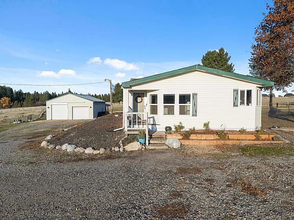 Saltese Flats motivated Seller! 5 acres with a 24x24 detached shop. Updated in 2021, this home offers an open floor plan, LVP floors, and bright natural light with lots of beautiful windows. This is a 2+ bed (office was previously used as a 3rd small bedroom) 2 bath, 1993 mfg home. There is a large fenced garden area, a small animal setup with updated fencing, and a big lean-to for storage off the back of the shop. All paved access to your gated gravel driveway. Move right in? Build your dream home? So close to town and amenities, yet the perfect country setting with room to expand. Get your offer in quick; these beautiful views won't wait.