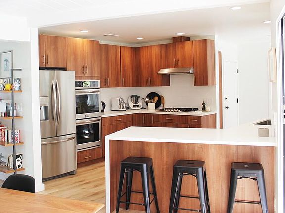 California Ranch/Modern Mediterranean Style Family home, featuring 5 bedrooms, 3.5 bathrooms 2 cars garage and a huge gated backyard with large patio, perfect for entertaining, and/or lounging. Centrally located in Upper Ladera Heights, minutes to the beach, Marina del Rey, Culver City, Playa Vista, Silicon Beach, LAX. Close to the Westfield Mall, Trader Joe's, Sprouts & minutes from the Whole Foods in Playa Vista and the newly open Amazon Fresh store. Located near the Fox Hills park: featuring tennis & paddle tennis courts, basketballs & beach volleyball courts as well as a kids playground. This house features an open floor plan: large skylight, formal living room, entertainment living room & dining room (large enough for 8 to 10 people dining table), facing a 4 panels retracting sliding door with a bright view of the lounging area in the patio & the beautiful green large yard. This open floor connects to a fully remodeled kitchen, brand new stainless steel appliances (french door fridge, double oven, dishwasher & stove top); with a bar seating area: perfect for family meals, or drinks with friends. Or have breakfast in the quaint breakfast nook (sits 2 to 4 people), with views of the spacious yard. Access to the huge 2 car garage from the kitchen as well. The home is very bright, airy, with a modern mediterranean feel, and comes with matching light hardwood floors throughout, creating a bright flow through the house. Equipped with a separate laundry room, with brand new Samsung washer & dryer. Plenty of storage space in the kitchen & laundry room. Guest bathroom with shower is located by the kitchen, enabling the family area to stay private. The 5 bedrooms are secluded from the main living area. 4 bedrooms are on the ground floor which includes a modern master bathroom: standing bathtub, double sink and separate shower, fully remodeled. The bright and spacious master bedroom comes with sliding doors access to the backyard, and an attached remodeled bathroom with double sink and large rain shower. Stairs lead to the other bright master suite, amazing views of the backyard, attached bathroom, which can be used as another master suite, bedroom for a teenager, a guest suite or large office. The jewel of this house is the outside gated space. 5 beautiful trees, including a pine tree, a palm tree & jacaranda tree. Amazing backyard space in the middle of Los Angeles. The covered patio is large enough for a full seating area, and a 8+ dining table, perfect to watch the sunset or entertainment family and friends. The house comes with a fully paid weekly gardening crew. Ladera Heights is a Los Angeles secret - quiet family neighborhood, perfectly located and central. Weekly Gardening crew included. Renters pays gas, water & electric.