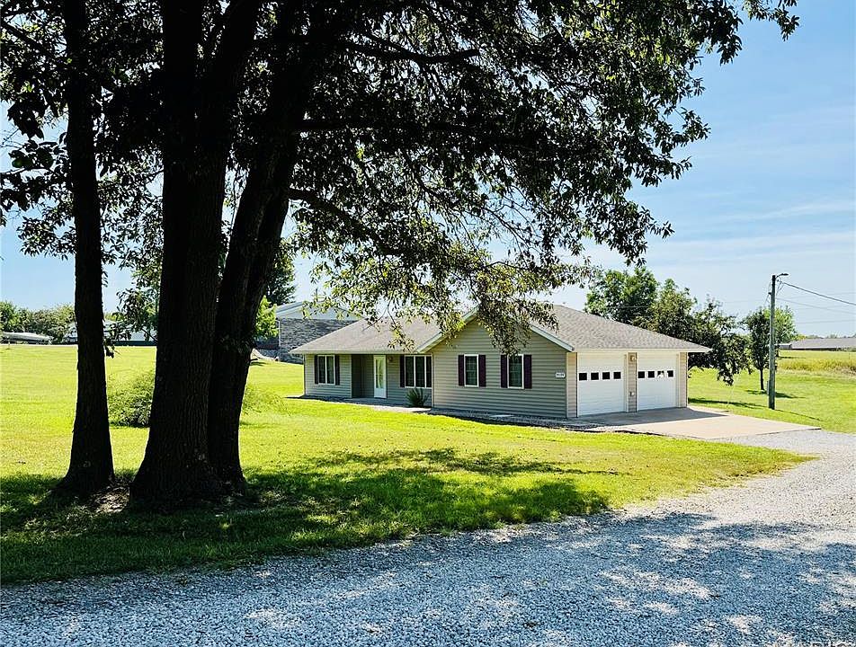 PRICE REDUCTION! Enjoy the Best of Both Worlds – Peaceful Country Living Just Minutes from Town! This well-maintained 2-bedroom, 1-bath home offers the perfect blend of affordability, comfort, and convenience. 1.5-acre lot between Hannibal and New London, you’ll love the established shade trees and quiet surroundings—all while enjoying the benefits of a hard-surface road and proximity to town. Step inside to an inviting, open-concept layout featuring a spacious living and dining room combo filled with natural light. The galley-style kitchen comes complete with stainless steel appliances that are just one year old. The bathroom offers both a separate shower and bathtub, along with a linen closet for added storage. A convenient laundry room is located just off the garage—and the washer and dryer will stay with the home! Recent updates include a 3-year-old AC unit, and the furnace and water heater are approximately one year old. The finished 2-car attached garage includes a painted floor, making clean-up simple and upkeep easy. The beautifully landscaped yard and serene country setting make this home a rare find. Propane tank is owned. The house has a private lagoon, it is NOT shared with other homes. Move-in ready! #lovewhereyoulive