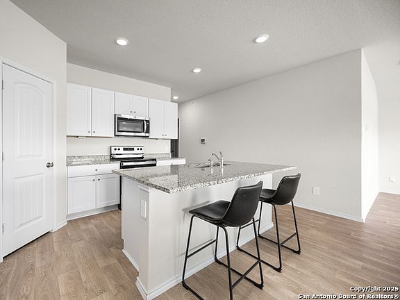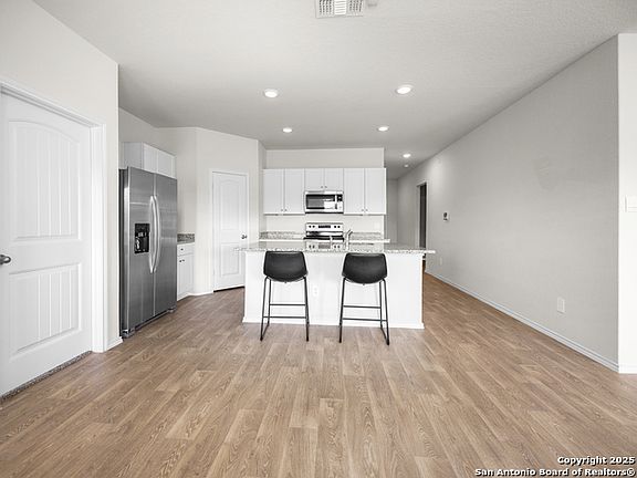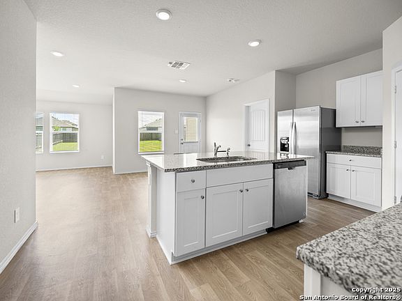 Move in ready! Built in 2024 and gently lived in - This well laid out open (3 bedroom, 2 bathroom) floor plan is not only functional, it is also a great fit for any type of living from single or family fun to entertaining friends or enjoying the evenings on the covered patio/porch area with oversized backyard. Spacious kitchen allows for many to enjoy gathering while cooking, eating, entertaining and even baking if that is what you favor. Spacious primary bedroom is split from the other two bedrooms. Enjoy this oversized backyard large enough for kids to play, entertain or simply enjoy sitting quietly reading a book. Also, this home is in a highly sought after area as a great location to access SH-46, FM-725, IH-10, TLU, shopping, dining, and access to various places in Seguin.