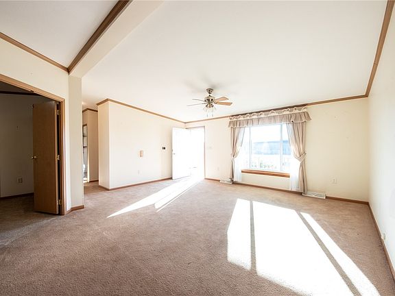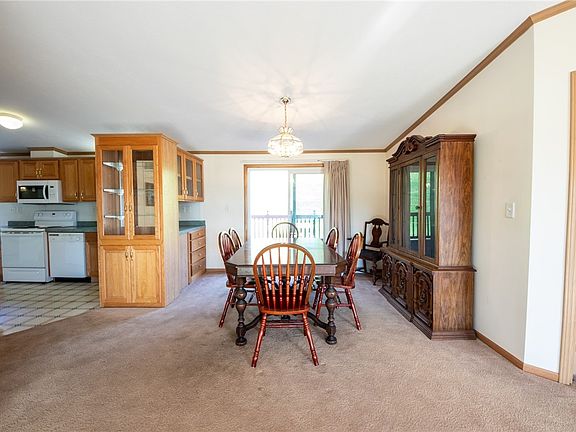 Natural light floods the home through replacement triple-pane windows, complemented by the warmth and character of wood trim. The living room boasts a large picture window overlooking the valley view. Utilities are turnkey with central AC, forced air, 200 amp electric service with generator hookup, and a UV filtration system and water softener. The 1,000-gallon concrete septic tank is built with a sizable 250-foot leach field for peace of mind. The property also boasts a paved driveway in excellent condition ($20,000+ value), a two-car garage with power openers, and a shop heater. A full, dry basement with high ceilings offers potential for customization, ideal for adding to the living space or to use for extra storage or work space. Two additional outbuildings offer storage for toys and tools.