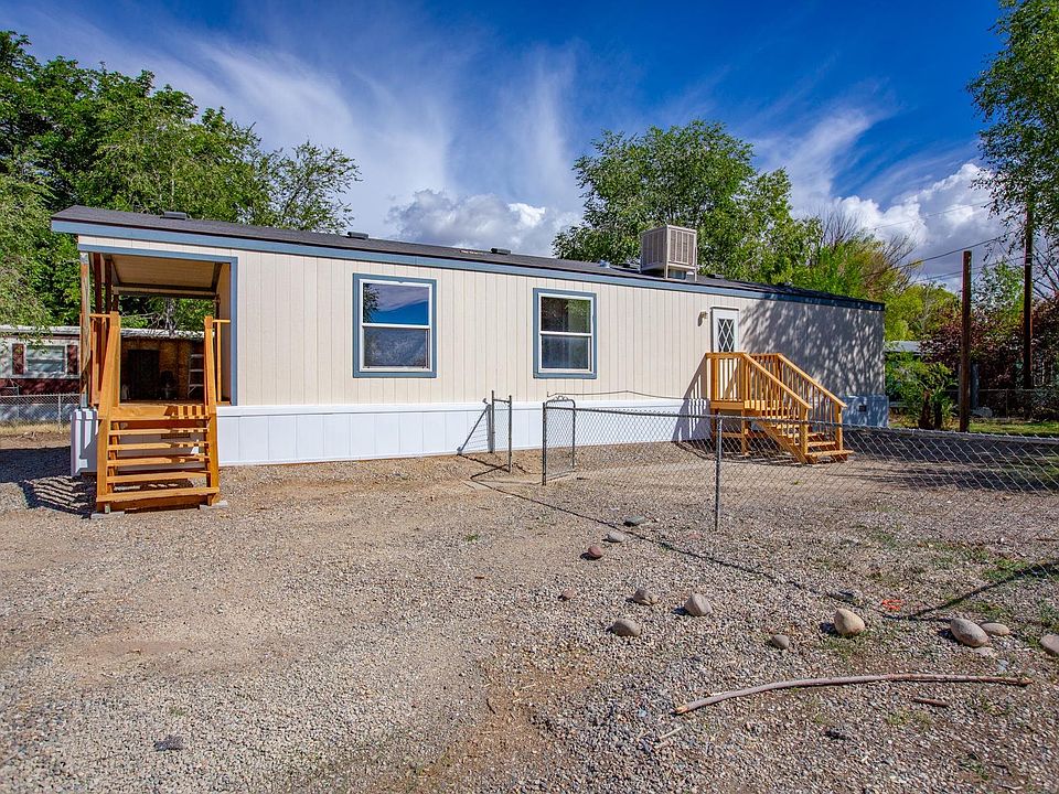 Affordable home situated on a large corner lot! Step inside to a bright and inviting layout featuring a spacious kitchen and living room filled with natural light-perfect for relaxing or entertaining guests. New carpet in living room and bedrooms. Enjoy your morning coffee on the nice front deck, with new wood steps. The exterior boasts brand-new skirting for a polished look, and a brand new roof is scheduled to be installed in the next few weeks. New 200 amp electrical service has also been installed. The fenced in yard offers plenty of room for pets, gardening, or outdoor gatherings, and is ready for a creative landscaping touch. Room for a garage to be built! Schedule your showing to see today!