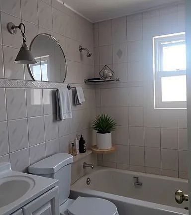 - Stylish bathroom with updated fixtures plus a convenient half bath
