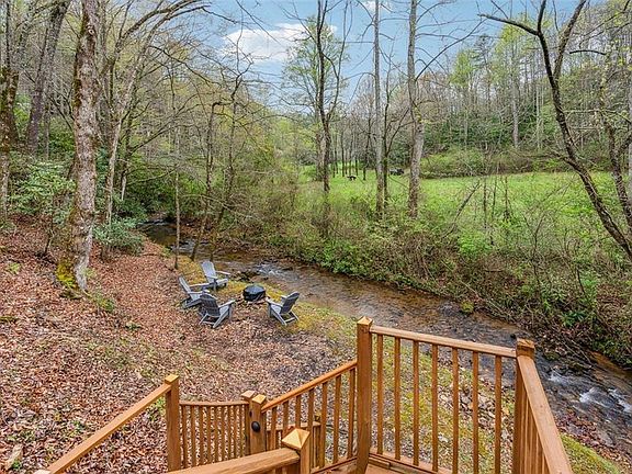 This wonderful open, bright and airy home boasts both the view and sounds of Fortenberry Creek as well as year around meadow views and seasonal mountain views! The home is being sold furnished! The home has 3 bedrooms and 2 bathrooms. The kitchen has been refreshed and has a view of both the dining and living spaces. The master is situated on the terrace level and has it's own walk out view of the creek on the lower deck. The upper deck circles the entire home and has a wonderful creek and mountain view. The home know as Creekside Cottage on Vacasa has a 2 year track record of rentals. The home is registered with Union County in the STR program and that can be transferred to the new owner if so desired.