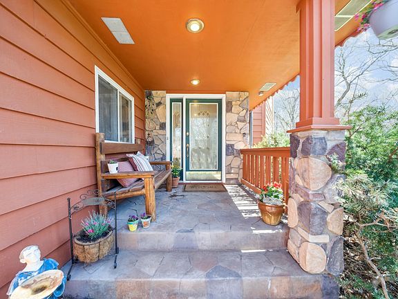 A large, sun-filled 3-season porch off the main living area transitions seamlessly to a sprawling 2-level deck with a pergola, perfect for soaking in the natural beauty which includes two low maintenance wildflower gardens that are attractive havens for pollinators, enhancing the landscape with vibrant seasonal color. The professionally landscaped fieldstone fire pit in the backyard provides space for gatherings under the stars.