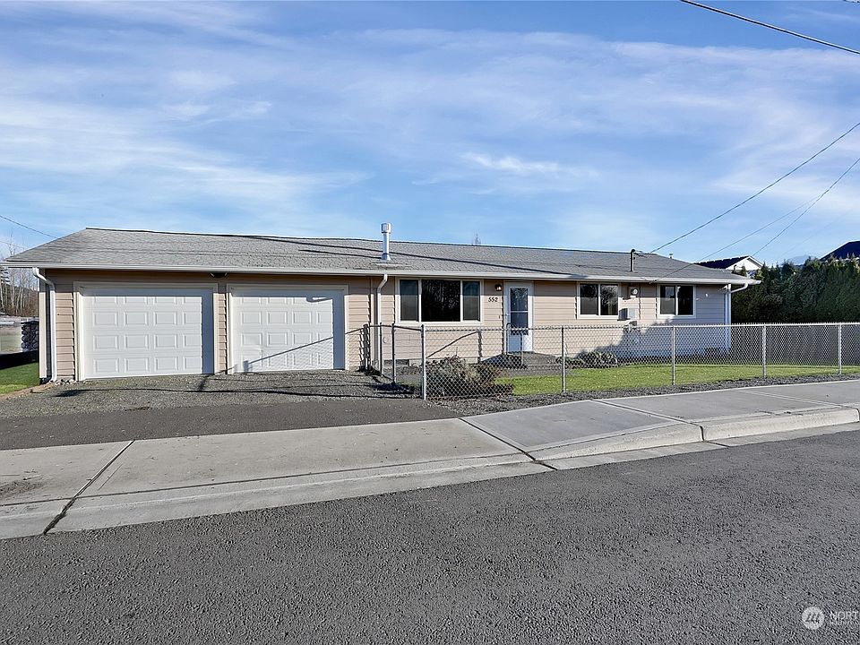Welcome Home to this solidly built, well maintained rambler in Buckley. This home has a nice living room with brand new gas free standing stove and a ductless mini-split for efficient heating and air conditioning. Nice kitchen with large eating area and bar seating. There are 3 good sized bedrooms with a full bath. Oversized attached 2 car garage with access to the fully fenced yard with an additional garden shed for all of your yard tools and equipment. Home is wired for a generator and newer unit stays with the home. Close to historic downtown Buckley with easy access to Hwy 410 and Rails to Trails.
