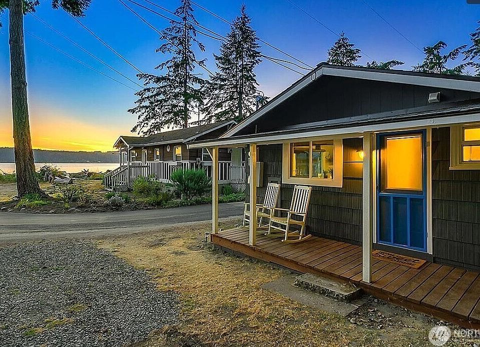This cozy 2-bedroom, 540 sq ft cabin offers a charming introduction to the serene beauty of Camano Island. Located in the sought-after Sundin Beach community, you’ll enjoy breathtaking sunsets and private beach access just steps from your front door. A mini-ductless split efficiently provides both heating and A/C for the open living area. Slow down and soak in the relaxed pace of island life, or take a quick 5-minute drive to explore the shops and cafes of Stanwood. Just 50 miles from Seattle, without the hassle of a ferry. Camano makes the perfect weekend getaway! Recent updates include a remodeled bathroom, new front door, 3 new windows, fresh interior paint, and new septic system. Was a successful AirBnB and rental.