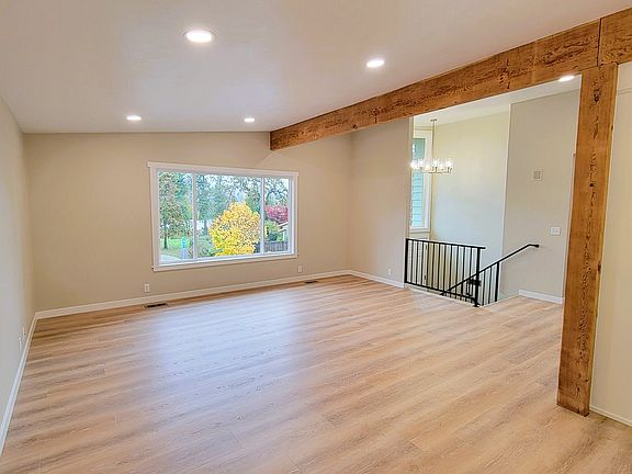 Stunning River Views, fully renovated split level! Every room in this lovely 3 bedroom has been meticulously updated and features all new LVP floor coverings, new light fixtures, new vinyl windows, and fresh paint both inside and out. The primary bedroom features an oversized walk-in closet and an on-suite bath with a walk-in shower. Two separate living areas are an ideal setup for a multi-generational household. The large back deck is perfect for entertaining, or just relaxing at the end of the day. Situated just a stones throw from the Willamette River, and the North bank river path system, this move-in ready property is surrounded by natural beauty, and primed for you to call home! Set up a showing today!