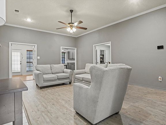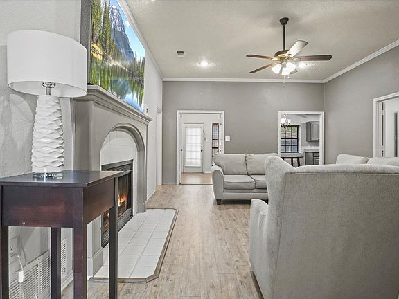 This beautiful brick home sits on a spacious, tree-shaded corner lot with a fenced yard. Inside, you’ll find a large living room featuring built-in shelves, cabinets, a cozy fireplace, and stylish vinyl wood floors. The updated kitchen boasts granite countertops, black and stainless-steel appliances, and abundant cabinet and shelving space. The primary suite offers a generous bedroom with an ensuite bath, complete with a garden tub, separate shower, dual granite vanities, and modern fixtures. Two additional bedrooms share an updated bath with granite counters. A convenient utility room provides full-size washer dryer hookups and extra cabinet storage. New HVAC unit installed 2022. THIS HOME IS PRICED TO SELL. SOLD AS IS.