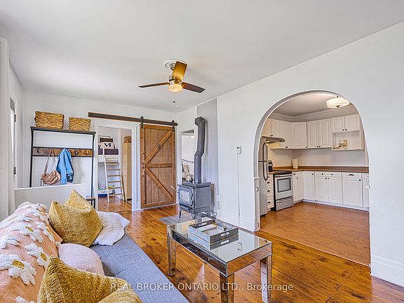 Perfect for first time buyers, downsizing, or potential investment opportunity. Detached Bungalow on HWY 90 in Utopia. Approx. - 1,400 Sq/Ft, 3 Beds - 2 Baths. *INTERIOR* The living room is bathed in natural light. Rustic knotty pine floor in main area. New kitchen island with quartz countertop, Newer Fridge and double deck oven. New drywall and ceilings throughout (exception 1 bedroom ceiling). Separate dining area. Den, which can be used as additional bedroom if desired. Increased insulation blown in attic. Potential rental opportunity with bachelor/studio suite with separate entrance. *EXTERIOR* Brick and Vinyl Siding. Plenty of gardening space, mature herb garden. Backyard shed updated roof. Private Drive Double Wide with 4 car parking driveway. Newer Berkeley water pump and triple stage UV water system *NOTABLE* Conveniently situated between Barrie and Angus, this location is just a short drive from schools, parks, shopping centers, and recreational facilities. Easy access to major highways adds to its appeal.