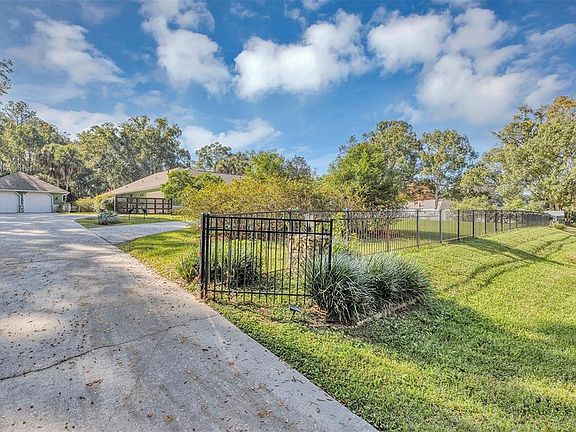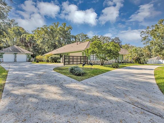 Welcome to your private slice of paradise in the quiet ORONOQUE neighborhood—a spacious 4/3/2 pool home on 1 beautifully landscaped acre, complete with a fully furnished detached 1/1 apartment with its own address, perfect for guests or family. Step inside to an inviting layout centered around a stunning kitchen with a huge island overlooking the family and dining rooms. Enjoy cozy evenings by the wood-burning fireplace or open the sliding doors to connect seamlessly to the screened pool and spa. The expansive master suite features two walk-in closets, French doors to the pool, and a spa-like bath with a double marble vanity, garden tub, and tiled double shower with bench. The property is fully fenced with two gates and a circular driveway, offering excellent parking options including space for an RV. Recent upgrades provide worry-free living: new 2024 HVAC system with insulation and ductwork, 2024 gutters, 2024 electrical panel and exterior lighting, 2024 pool lighting and heater, and freshly renovated and painted main home. The apartment was renovated in 2022. Ideally located near shopping, dining, parks, medical facilities, and everything Ocala has to offer—this home delivers the perfect balance of tranquility and convenience.