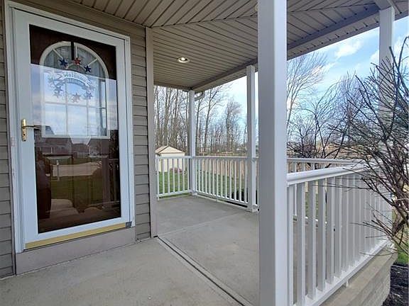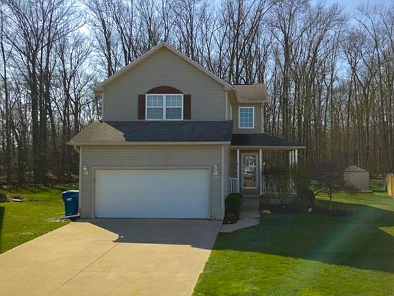Welcome Home! This spacious colonial is situated on a cul-de-sac in North Ridgeville. For those morning coffees, relax on the front porch with recently new vinyl railings. Greeted by an open foyer is a wonderful view of the living room featuring a gas fireplace for all those cozy days at home. An open style kitchen with a double door pantry also showcases a bar top counter facing the dining room. First floor laundry/ mud room right off the attached 2 car garage. A convenient half bath also located on the first floor. 4 bedrooms and 2 full bathrooms make up the second floor. The master bedroom features a spacious walk in closet with shelving, a powder station, and an en suite bathroom. The full unfinished basement is plumbed for a half bath and can be used as a recreation room. Head out back to the patio for entertaining and grilling. A good sized shed for all your landscaping tools. You won't be disappointed with the view of this great lot. No HOA!! All appliances stay, call for a showing before this one gone.
