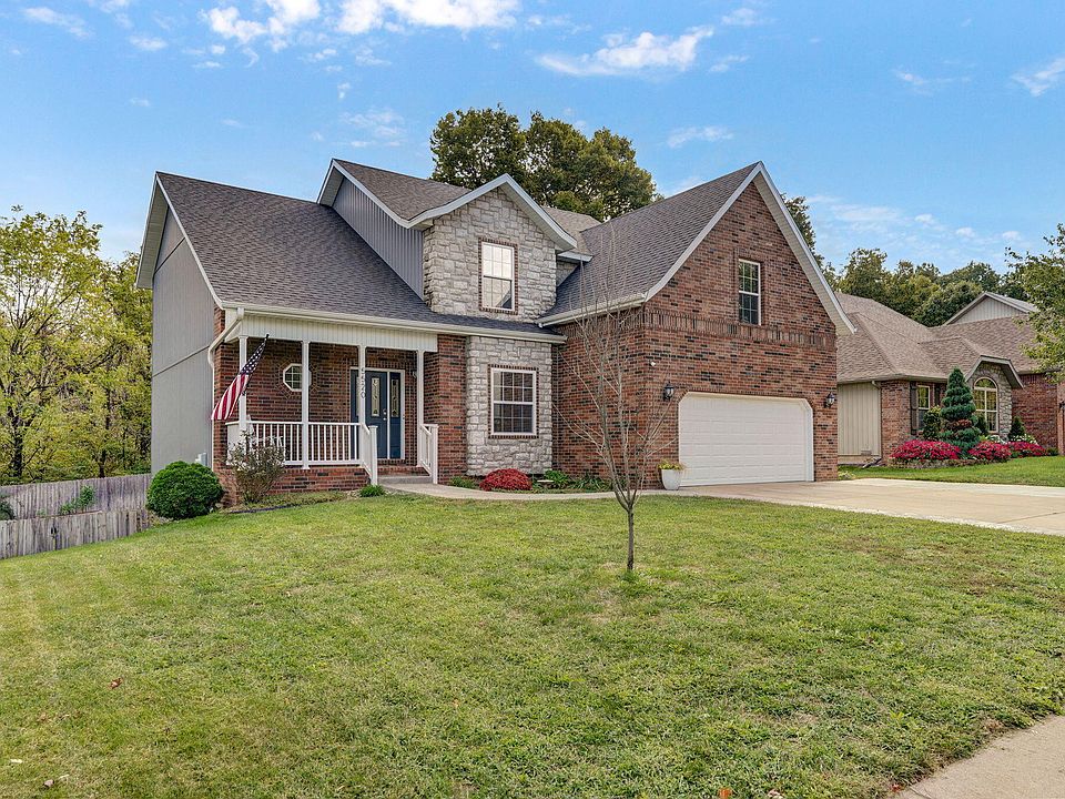 Welcome to this Stunning 5-bedroom, 3.5-bath home in the highly sought-after Le Chateau community! This beautifully maintained property offers an inviting open floor plan, warm hardwood and tile flooring, and a cozy fireplace that creates the perfect gathering space. The large kitchen is a chef's delight, featuring raised panel cabinetry, stainless steel appliances, a stylish tile backsplash, and a convenient bar-top for casual dining. The spacious primary suite includes a tray ceiling with crown molding, dual sinks, a relaxing soaking tub, and a separate shower. You'll also love the massive bonus room -- ideal for a home office, workout space, or an oversized closet. The finished basement adds even more versatility, with an additional living area, bedroom, full bath, and plenty of storage. This home has been thoughtfully cared for, with updates within the last few years including a new roof, gutters, garage door, a stamped concrete walkway and appliances -- plus a new HVAC system in 2020. Enjoy quiet evenings outdoors on the covered back deck or around the backyard firepit. Perfectly located near shopping, dining, and highway access, this home combines comfort, convenience, and quality -- making it a must-see!