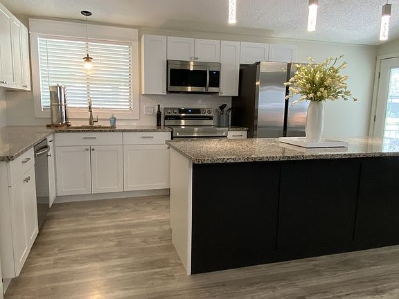 When you walk into this beautifully FURNISHED home THROUGH the BRAND NEW DOOR WITH BUILT IN BLINDS, 3 words come to mind, Modern, Coastal, Elegance. In this FURNISHED TURN KEY 2 bedroom 2 bath, 1352 square foot home, you will be wondering if it is a manufactured home! If you have been waiting for the wow home for a great price, this is it! As you step into the front door of the open floor plan, you will see the amazing beauty of the upgrades. Starting with the new 2025 waterproof luxury vinyl plank flooring throughout. In the kitchen, you will find new granite countertop, new cabinets with soft close drawers, and new matching fingerprint proof Samsung stainless appliances, and new lighting throughout. Also, the center island has an overhang for a few bar stools. In the living room, you will find a built in custom electric fireplace and a 65 TV. In the hallway bathroom there is a new vanity, sink, toilet and a bathtub. In the master bathroom, there is a custom porcelain shower and a new double vanity, sink and toilet. LED lighting throughout. New exterior and interior paint! Extra-large enclosed screened porch just waiting for you to enjoy Florida evenings and mornings!