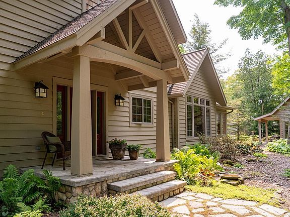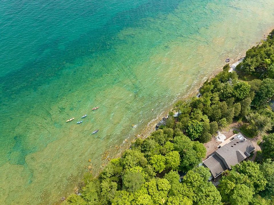 Elegantly crafted home along 219' feet of Lake Michigan frontage, steps away from Cave Point and the Whitefish Dunes State Park boundary. Thoughtfully designed with 1st floor primary suite, this home is an ideal permanent residence or seasonal retreat for hosting. Being sold fully furnished with high quality curated pieces. Detached studio with water views offers additional office or guest space. Listen to the waves as you relax in the sun room, the rain as it falls over the screened porch skylights, or cozy up in the great room in front of the floor to ceiling stone fireplace. Showings to begin 7/27 and go through the weekend. Proof of funds required for any showings.
