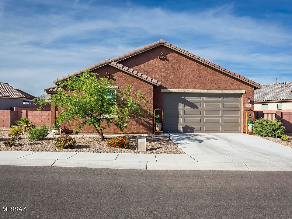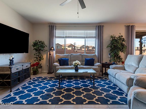 Welcome to Your Dream Home! Nearly New 2022 De Anza Beauty on a Premium, .23 Acre Lot with Mountain Views from the Front and Back! Formal Entryway + 9 Foot Ceilings Opens to a Massive Kitchen with Gorgeous Granite Countertops, Large Center Island, Gas Range, and Full Size Pantry. Upgraded Cabinets, Upgraded Slider to Backyard. Upgraded Light Fixtures, Ceiling Fans, Designer Colors, and Window Coverings. Farmhouse Wood Shelves in Great Room and Guest BR. Neutral 21 inch Tile in all Traffic Areas. Premium Carpet. Tankless Water Heater. Large Primary Suite offers Executive Sized Bathroom with Double Vanity + Walk in Closet. Huge Backyard with Mountain Views + Separate Double Iron Gated Dog Run. Lot abuts Common Areas on Two Sides for Added Privacy. Why Wait to Build when you can Have it Now! Fantastic Location- Minutes to I-10 and Cortaro, Shops, and Schools. Community Offers four parks with shade trees, turf, playgrounds, Ramadas and Trails. Additional Upgrades include two sinks in both Bathrooms, Upgraded 42 Inch Maple Cabinets with Hardware, Upgraded NEST Thermostat, and Numerous Energy Efficient Features throughout- Plus an Epoxy Coating in the Garage. This is a MUST SEE HOME, DON'T DELAY!