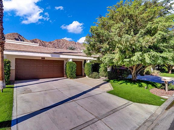 Wonderful location within PGA West. The home has a panoramic view of the Santa Rosa Mountains and is located on the 11th green of the Palmer Private Golf Course. The condo has 1 primary suites and the 2nd bedroom is also with a full bath. A large office/bedroom with its own full bathroom. The gourmet kitchen has slab granite counter tops, stainless steel appliances, a gas cooktop and opens to the living room with a granite topped breakfast bar. Newer flooring and baseboards through the home. Living Room has a stone fireplace & high ceilings. Condo is very close to 1 of the many community pools. Home is tastefully furnished and is nearly move-in ready. Enjoy the beautiful desert evening with the night-lit Santa Rosa Mountains as the backdrop.