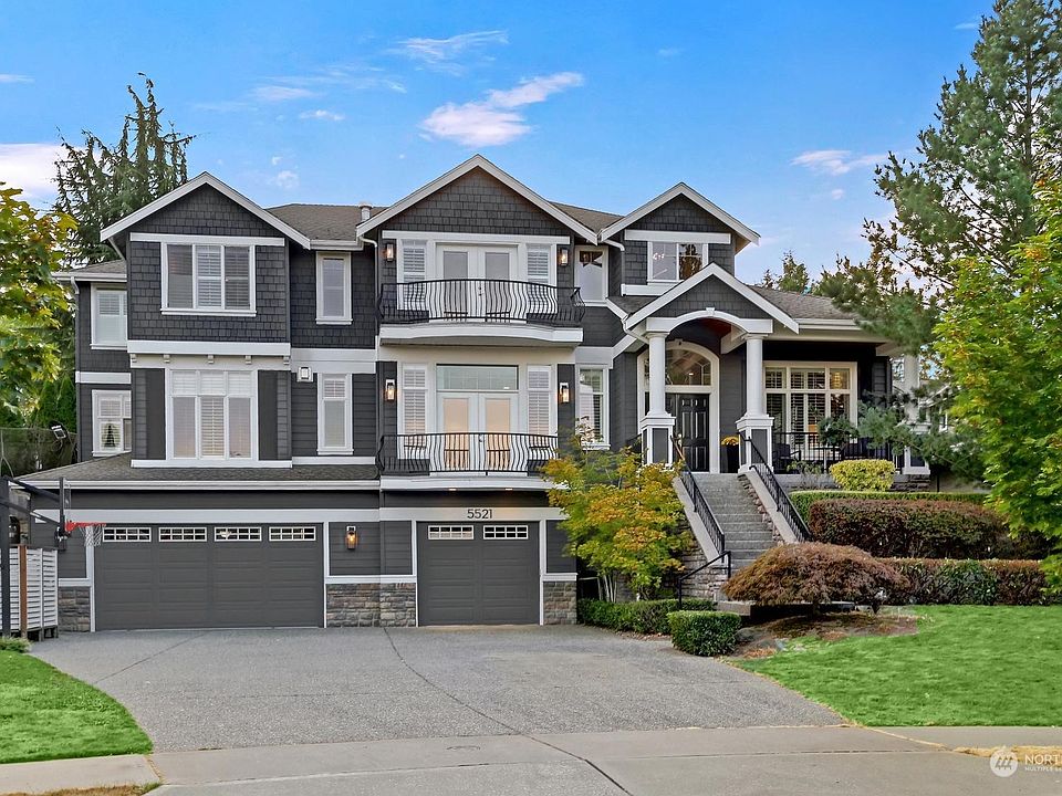 Welcome to a beautiful, move-in ready luxury home in a highly desirable Redmond neighborhood. The smart open floor plan with high ceilings is flooded with natural light and is ideal for entertaining. Remodeled as recently as this summer, no surface has been left untouched and everything is updated in a modern style with only high-end finishes and appliances. Minutes from bustling downtown, trails, lake, parks and high tech job centers, this large home has gorgeous sweeping views of the Sammamish River Valley and the Cascade mountains. Two balconies, three covered porches and a backyard oasis seamlessly blend indoor and outdoor living.