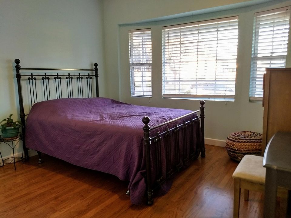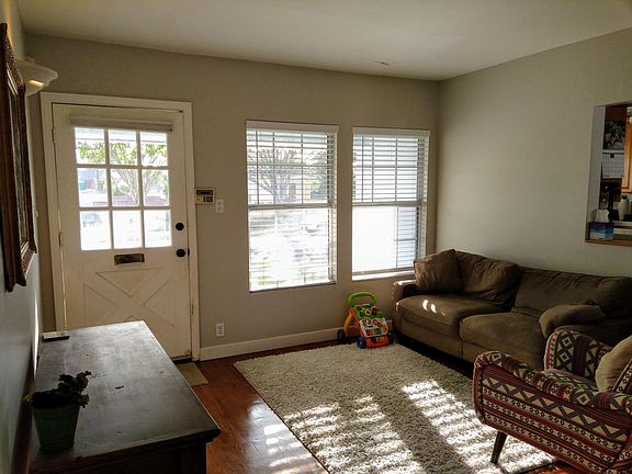 Spacious single family house in great neighborhood. Large, fully remodeled kitchen with bay window, island, bar stools, laundry nook, and wood cabinets. Newly installed hardwood floors upstairs: family room and master bedroom. Newly refinished hardwood floors downstairs: living room, dining room, kitchen, hallway, and stairs. Tile floors: both bathrooms and balcony. Upstairs: vaulted ceilings, enormous master bedroom with window seat and walk-in closet; huge family room with gas-burning fireplace. A chandelier hangs over the stairway. Wood blinds throughout. Lots of built-in storage space. Huge balcony with built-in barbecue. Spiral staircase leads to backyard with lemon, lime and peach trees, patio, new patio cover with recessed lighting and garden with a variety of vegetables, herbs and tomatoes.
