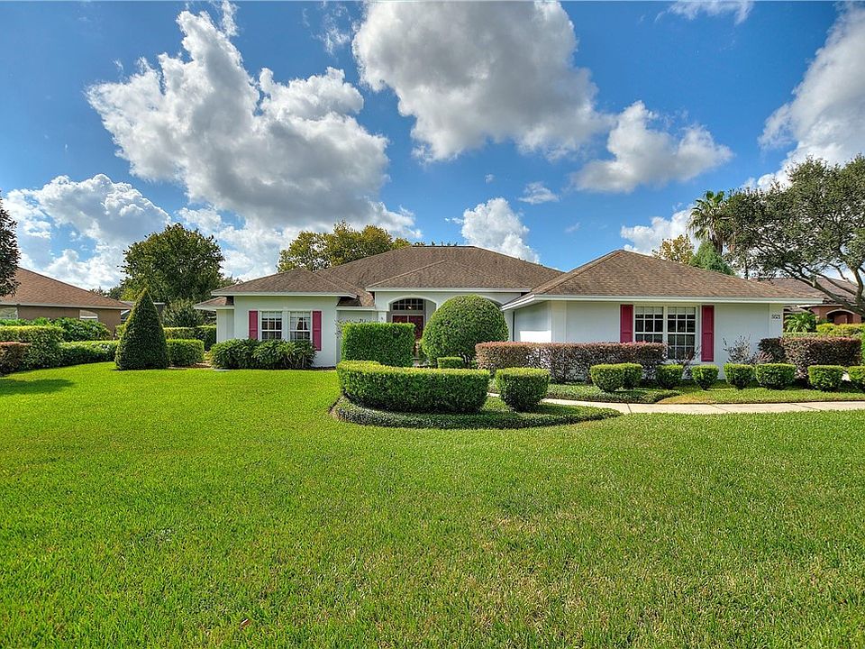Rarely available concrete block home with over 3,000 SF of A/C living in HIGHLY sought after Emerald Ridge. Emerald Ridge is a quaint gated community of just 72 single-family homes located in the heart of Lakeland, complete with a community pool. The home features a spacious split floor plan on a .45 acre lot on a Cul-De-Sac Street. The interior of the house presents four bedrooms, vaulted ceilings, three separate living spaces, a dining room, & an open-concept kitchen. The backyard showcases a renovated pool & spa, with plenty of room for outdoor dining & seating in the larger covered patio.