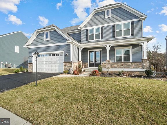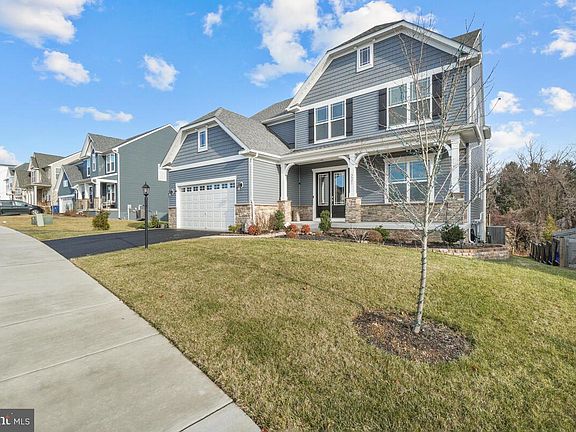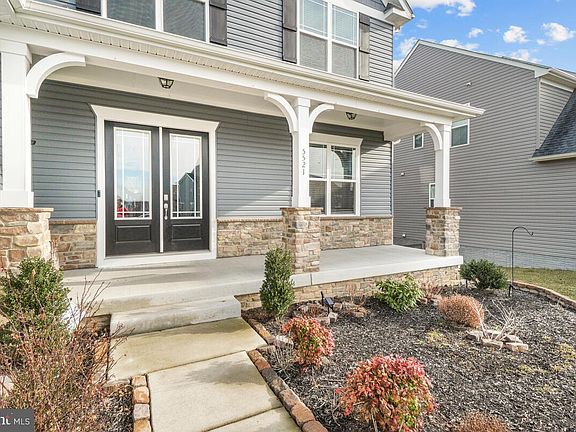 Welcome to Luxury Living at 5521 Hawk Ridge Road! This is the one you’ve been waiting for! Nestled in the prestigious Tallyn Ridge community, this stunning Rowan model by Drees Homes blends timeless elegance with modern comfort. Featuring 5 bedrooms and 5 full baths, this home offers exceptional space, style, and sophistication for every member of the family. Step inside and be greeted by rich dark flooring, elegant crown molding, and wainscoting that set the tone for the craftsmanship throughout the main level. The heart of the home is the gourmet, open-concept kitchen, showcasing a striking espresso island with a farmhouse sink, custom pendant lighting, and plenty of seating for family and guests. The white cabinetry, gray and white tile backsplash, and high-end stainless steel appliances—including a 5-burner gas cooktop, hood, double oven, built-in microwave, and French-door refrigerator—create the perfect setting for both cooking and entertaining. From the eat-in kitchen, step out onto the spacious Trex deck overlooking the serene wooded backdrop. Enjoy outdoor gatherings on the stone patio below, complete with a retaining wall and play area for children. Upstairs, retreat to the luxurious primary suite with a sitting area and spa-like bath featuring a soaking tub, dual vanities, and an oversized two-person shower. His & Her walk in closets with built-in organizers complete this private oasis. Three additional bedrooms—all with custom walk in closet organizers, share a Jack & Jill bath and an additional hall bath. The convenient upper-level laundry room includes a sink and washer/dryer. The fully finished walk-out lower level adds even more versatility, featuring a home office or guest suite with an attached full bath, a spacious recreation and game area, and a playroom that walks out to the backyard patio. Enjoy all the amenities of the Tallyn Ridge community, including a swimming pool, clubhouse, tot lots, and walking trails that connect directly to Pinecliff Park—where you’ll find ballfields, picnic areas, a boat ramp on the Monocacy River, and scenic nature trails. Ideally located just minutes from downtown Frederick, major commuter routes, and within the sought-after Oakdale School District, this home perfectly combines luxury, convenience, and tranquility. Don’t miss the chance to make 5521 Hawk Ridge Road your dream home!