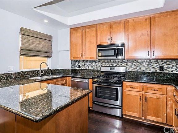 Gorgeous 3 Bed 4 Bath Townhome in Sherman Oaks. 3 Bed, 2 full baths and 2 half baths, and a rooftop patio with sunset views. Hardwood floors on the second level family room w/ fireplace, kitchen, dining area, and half bath. The kitchen features, granite countertops, stainless steel appliances, and built-in wine fridge. Third level features a master suite with vaulted ceilings, skylight, balcony, fireplace, walk-in closet and en suite bathroom with granite countertops and shower with a jetted tub. Two guest bedrooms and guest bath complement the master bedroom on the third level. Garage parking with two spaces and direct access to unit entering the large main level bonus room featuring an interior laundry closet and half bath. Amazing storage room on top level! Entertain friends and enjoy your own rooftop deck large enough for a grill and patio dining as the day winds down. Tenant Pays Electricity and Gas