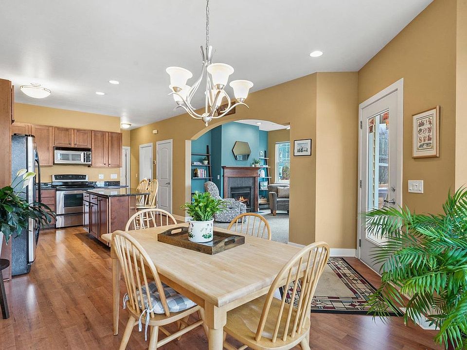 This stunning condo blends quality construction with stylish design, featuring a main-level primary bedroom suite and thoughtful upgrades throughout. You'll love the oversized bedrooms and closets; perfect for home offices or private guest rooms with plenty of storage! The sun-filled kitchen boasts stainless steel appliances, stone countertops, red oak cabinetry, and a spacious island, while the interior is enhanced with painted trim, paneled doors, hardwood floors, and a cozy gas fireplace. Conveniently located across the street from a park and near downtown, restaurants, and bike trails; this condo is a perfect combination of elegance and accessibility. Make it yours today!