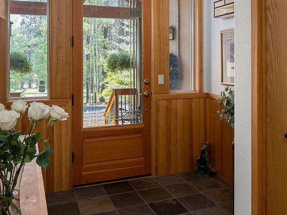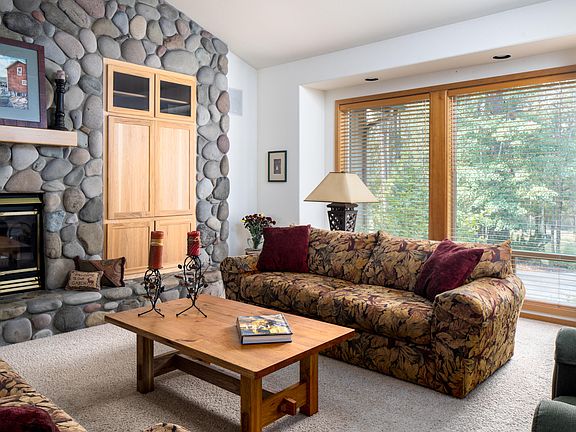 Situated on a spacious 4-acre plot ideally positioned with National Forest on 2 sides. Possible owner terms with 1/2 down, 4% for 4 years, interest only. The front porch and entryway lead into a Great Room featuring vaulted ceilings and a wood-burning fireplace. An open floor plan seamlessly connects the dining area and kitchen, where new stainless-steel appliances and a roomy pantry make it a hub for gourmet meal creation. Large windows bathe the interior in natural light. The back paver patio beckons you to enjoy the surrounding wilderness or gaze at the night sky while unwinding in the hot tub. The primary bedroom boasts a walk-in closet and ensuite bath with a dual vanity. Two guest bedrooms share a full bath. An upstairs family room with a half bath offers versatility, whether as a media room, office, or game room. The highlight is a spacious 4-car garage that can accommodate vehicles, boats, motorcycles, and still leave space for seasonal decorations.