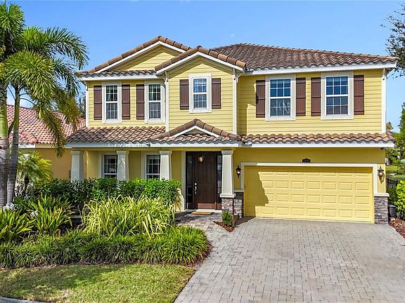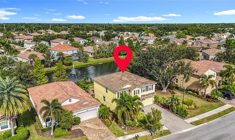 Discover Ashton Pointe, a prime location in a gated community. Built in 2015, this storybook 2,778 sqft home features 4 bedrooms, 2.5 baths, and a bonus room, all in move-in condition. Barrel tile roof, paver brick driveway, and mature, neatly manicured landscaping with a peaceful lake view and a fenced yard. The landscape is maintenance-free, thanks to two community wells that keep everything green. The floor plan (pictured) is ideal for an active household, offering the living spaces you need. This meticulously maintained, one-owner home is built with the features and finishes you desire. Luxury wide plank vinyl flooring flows throughout the first and second floors. The first floor includes a half bath, a combined living and dining room with a kitchen pass-through, and a show kitchen with a café dining area that opens to the family room, complete with a screened lanai and lake views. Your kitchen features granite countertops, 42” upper wood cabinets, a designer glass tile backsplash, and stainless-steel appliances. Crown molding throughout the home adds a touch of elegance, while ample storage closets keep everything organized. The primary suite is “L” shaped with a sitting alcove, a stepped ceiling, a large walk-in custom closet, and a spa-like bath with a separate tub and frameless shower. Additionally, there are spacious guest bedrooms and an open 10.5’ x 10’ bonus room/play area. The laundry room is conveniently located on the second floor with storage cabinets. Step outside to the fully fenced yard featuring a paver deck patio and screened lanai overlooking the lake with its fountain. Just across the street and down three doors, you’ll find the fenced playground. This home is just a few blocks from “A” rated public schools (Ashton Elementary & Sarasota Middle) and offers quick access to I-75, shopping centers, state parks, restaurants, and is only minutes from the world-famous Siesta Key Beach.