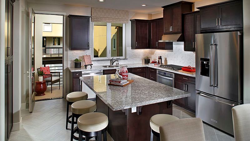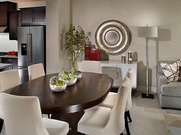 Freshly Updated Models ; Open by Appointment The Residence Three features a two-car garage with an open floor plan that offers the perfect combination of functionality and luxury. A separate first floor bedroom with private bathroom is ideal for guests, an older child or extended family. The second floor opens into the center-island kitchen, dining and Great Room and features a covered deck which extends the overall living space. The spacious top floor layout includes an owner's suite that boasts an expansive walk-in closet and a spa-like bath complete with dual sinks and an oversized shower.