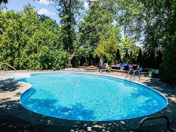 Here it is, the POOL home you have thought about for years! This casually elegant home has 5 bedrooms and 4 full baths. A heated pool and patio Oasis, designed for entertaining; be prepared, your friends will want to come over frequently to enjoy the calm setting and stress-free surroundings. But let's not forget this well-detailed custom home itself, it has so much to offer. The main floor begins with a welcoming foyer that presents gleaming hardwood floors and is flanked by an office or sitting room to the left and the formal dining room to the right. The kitchen shines with light and bright quartz countertops, an island induction cooktop, a complementary stone backsplash, and solid wood staggered-height crown-molded cabinetry. To the right of the kitchen is the main floor guest, in-law, or nanny bedroom, adjacent to a full bath, the laundry room, and exit to the three-car garage. To the left of the kitchen is the breakfast nook, a beautiful sunroom overlooking the yard, and finally, the "Gathering" Room fireplace makes this large room cozy on those cold winter days. The finished basement has new carpet, a full bathroom, and is a blank canvas for your imagination. Upstairs, the Primary suite is sweet! The room is spacious with vaulted ceilings and an exceptional SPA bath, a huge walk-in closet, and a separate room for an office or nursery, complete with a mini kitchen. Three more spacious-sized bedrooms and a nicely remodeled hall bath complete the newly carpeted upstairs sleeping quarters.