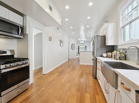 Charming rear courtyardStainless steel appliancesMarble countertopsIn-unit washer and dryerOpen-concept kitchenBamboo wood floors