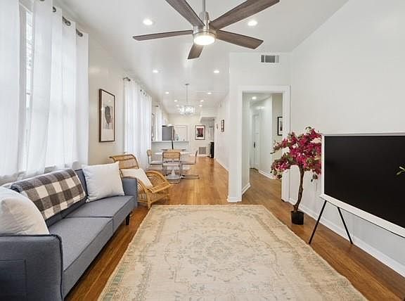 Recently renovated and generously sized, this 3-bedroom, 2-full bath upstairs apartment offers an open-concept kitchen and living/dining area. The kitchen boasts stainless steel appliances, marble countertops, a dishwasher, and an in-unit washer and dryer. Bamboo wood floors run throughout, and a charming rear courtyard enhances the home's appeal. A newly installed fortified roof adds peace of mind and long-term value. Ideally located just minutes from the University District, Broadmoor, Maple Street, Audubon Park, and the St. Charles Streetcar line this one is not to be missed.