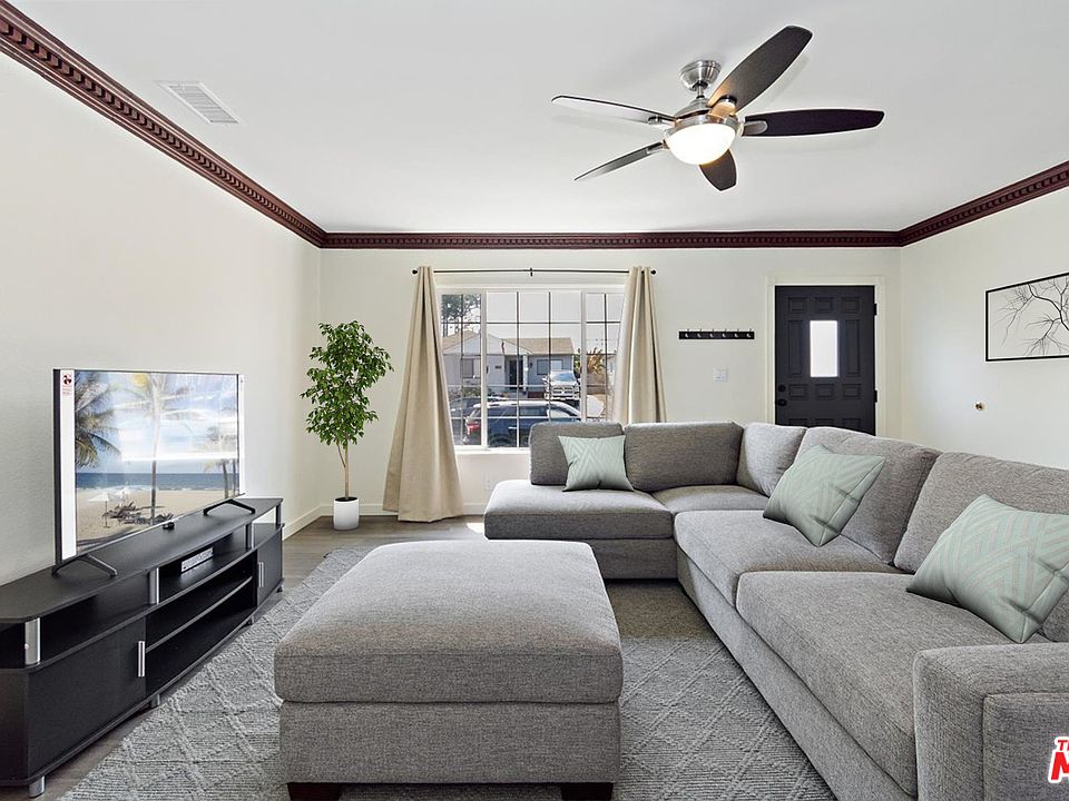 Freshly updated 4 bedroom + 2 Bath expanded home in Westchesters Osage area. Spacious, open design in kitchen, dining and living room areas, accented with wood crown molding and new wood floors. Updated kitchen and bathrooms, new lighting fixtures, window coverings, ceiling fans, and doors. New air conditioner, tankless water heater, and new 200 AMP electrical panel/meter. Front yard with sprinkler system, and covered back patio with chic inset tile. Large one car garage with newer washer and dryer. The garage is attached to a rec/storage room (approx. 368 sf) with new wood floors, and remodeled non-conforming bath.