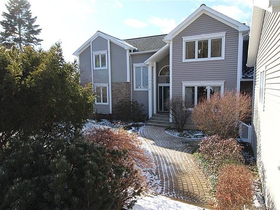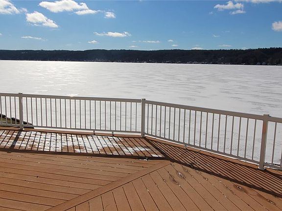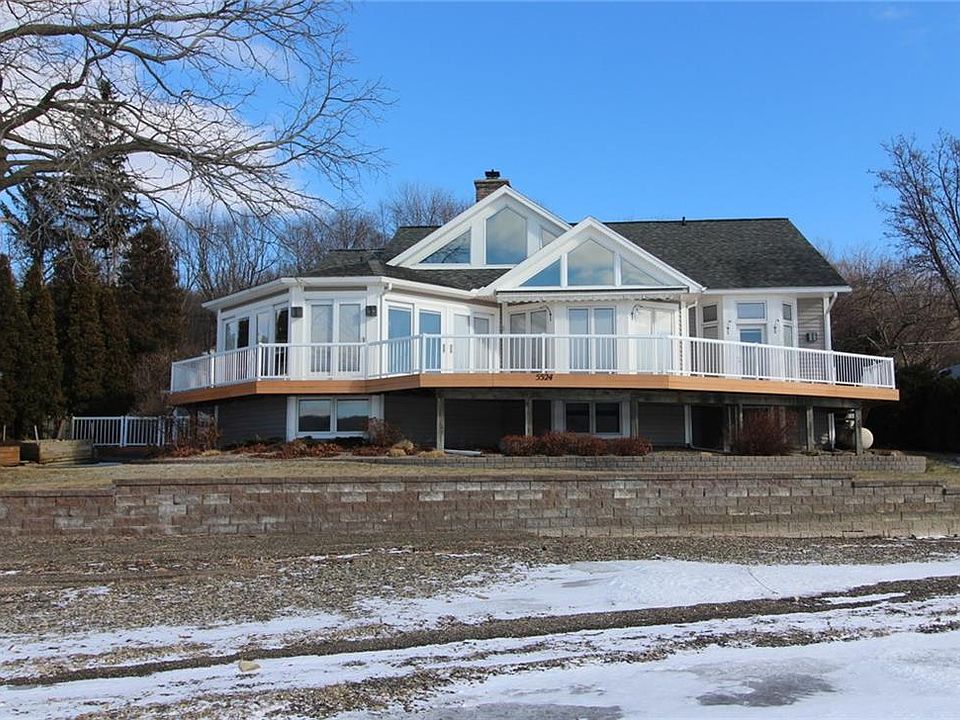 SPECTACULAR Waterfront Home! Like out of the pages of Architectural Digest! Custom Built w attention to every detail. Inside flows to the outside wrap around Lakeside 2 tiered trex deck. Gorgeous Living Rm w wall of windows, FP, Vaulted Ceiling, Skylights & High Triangular Windows for lots of natural light! Gourmet Chefs Kitchen w Solid Surface Countertops, Sub Zero Frig, Skylight & all appl, Dining Rm & Large heated Lakeside Sunroom! 1st Floor Master Bdrm opens to deck & has 2 closets incl large walk-in. Luxurious Master Bath w Jacuzzi tub, walk-in shower, double sinks, granite vanity top. 1st floor laundry, 2 bdrms up w Full Bath, Huge Fully Finished walk-out bsmnt w Full bath, 3 car garage, prof landscaped, shale beach, & so much more! Dock incl. Some Furn Neg. Must see & EZ to view!