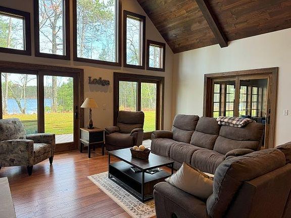 True North Condominium on the Manitowish Waters Chain! 3 bedroom, 2 bath plus Den with 2,977 square feet of living space. Includes a 2 car attached garage plus a 1 car detached garage and designated permanent pier/dock slip with power. Built with the finest details and craftsmanship. Main level includes LR, K, DR, Primary suite, 2nd bedroom, full bath, 3 season room and laundry room. Upper level includes family room, 3rd bedroom, den and full bath. Property has 510 feet of sand frontage on Spider Lake with 3.74 acres.