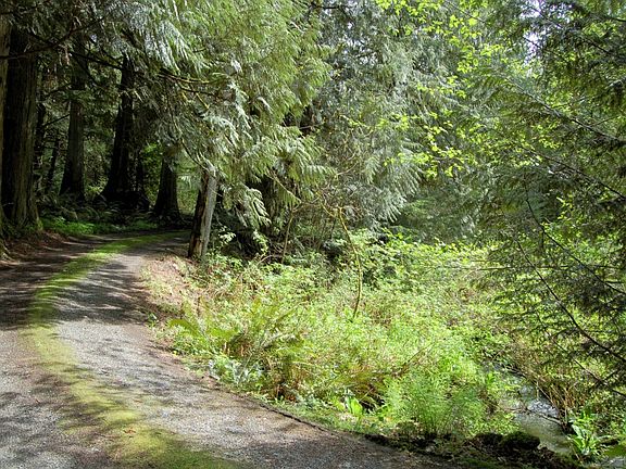 Perfect privacy just 15 minutes from town. This inviting home sits in a sunny clearing in the middle of a forested 4.8 acre parcel. Take the winding circular driveway past giant cedars and over a babbling creek, then pull under a porte cochere at the front door. Northwest Contemporary design features a new architectural shingle roof, cedar shingle siding, curved glass block walls, central staircase with vaulted ceiling, and a main floor master suite with a gorgeous, spa-like bathroom remodel.
