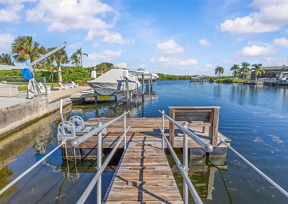 The neighborhood has a PRIVATE BEACH! If you want to live in one of the most desirable waterfront communities with coastal waterfront living, this may your HOME! Here is your completely renovated waterfront retreat featuring four bedrooms and three full bathrooms just under 2000 square feet of thoughtfully designed living space. This stunning home showcases luxury vinyl plank flooring throughout, hurricane-rated impact windows and sliding doors, and a brand new roof installed in 2025. This beauty has 2 bedrooms that have their own bathrooms. Perfect for guests. The heart of the home features a completely rebuilt kitchen with new appliances including dishwasher, oven, and refrigerator. All three bathrooms have been beautifully renovated with new vanities, granite countertops, comfort-height toilets, and modern fixtures. The primary bathroom boasts updated flooring, mirror, and vanity, while the third bathroom includes a bidet and electric towel rail. Step outside to discover exceptional outdoor living spaces. There's a screened lanai that features all NEW screens and polyspartic coating, while the back patio received a premium $10,000 coating treatment in 2024. A NEW PAVER FIRE PIT with new paver walkways create the perfect gathering area. This yard is completely FENCED in! The RESURFACED Salt Water pool is a great space for entertaining with a spacious covered patio area overlooking the canal to the Gulf of America! The hurricane-rated garage features poly spartic coating and overhead door. Boating enthusiasts will appreciate the floating dock and 10,000-pound automatic boat lift installed in 2021, complete with fish cleaning station and floating dock and outdoor shower. Just lower your BOAT on your private boat lift and go see the beautiful manatees, sea turtles, DOLPHINS and lots of birds! Take your boat to the close by waterfront restaurants, sand bars and islands. Additional upgrades include newer HVAC system, All interior Paint, exterior stucco work and painting, plus comprehensive renovations completed between 2019-2025. The list goes on and on! The community offers organized activities including beach volleyball, corn hole tournaments, yoga, and themed parties. The neighborhood offers a PRIVATE BEACH in the neighborhood for a only $200 year to watch the sunsets every night! You can have a picnic under the Pavilions and grille burgers & hotdogs with the provided grilles. Residents enjoy access to nearby Robert K Rees Memorial Park, convenient shopping at Publix, and quality education options at WonderED K12 Academy. Golf Cart Friendly and minutes away from Downtown New Port Richey with lots of shopping and restaurants. Minutes away from Tarpon Springs and the sponge docks. A short 15 minute boat ride to the Anaclote Island and sandbar! Just 2 Canals over then you are on the open GULF of AMERICA! This neighborhood is golf cart friendly! If you love boating, fishing and COASTAL LIVING then this is your dream home!