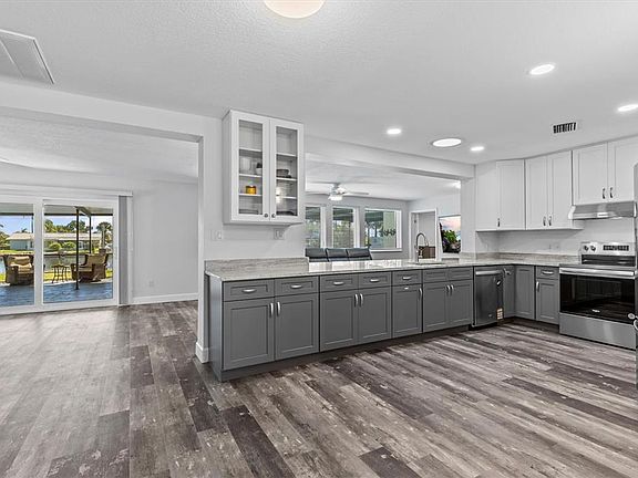 If you want to live in one of the most desirable waterfront communities with coastal waterfront living, this may your HOME! Here is your completely renovated waterfront retreat featuring four bedrooms and three full bathrooms just under 2000 square feet of thoughtfully designed living space. This stunning home showcases luxury vinyl plank flooring throughout, hurricane-rated impact windows and sliding doors, and a brand new roof installed in 2025. This beauty has 2 bedrooms that have their own bathrooms. Perfect for guests. The heart of the home features a completely rebuilt kitchen with new appliances including dishwasher, oven, and refrigerator. All three bathrooms have been beautifully renovated with new vanities, granite countertops, comfort-height toilets, and modern fixtures. The primary bathroom boasts updated flooring, mirror, and vanity, while the third bathroom includes a bidet and electric towel rail. Step outside to discover exceptional outdoor living spaces. There's a screened lanai that features all NEW screens and polyspartic coating, while the back patio received a premium $10,000 coating treatment in 2024. A NEW PAVER FIRE PIT with new paver walkways create the perfect gathering area. This yard is completely FENCED in! The RESURFACED Salt Water pool is a great space for entertaining with a spacious covered patio area overlooking the canal to the Gulf of America! The hurricane-rated garage features polyspartic coating and overhead door. Boating enthusiasts will appreciate the floating dock and 10,000-pound automatic boat lift installed in 2021, complete with fish cleaning station and floating dock and outdoor shower. Just lower your BOAT on your private boat lift and go see the beautiful manatees, sea turtles, DOLPHINS and lots of birds! Take your boat to the close by waterfront restaurants, sand bars and islands. Additional upgrades include newer HVAC system, All interior Paint, exterior stucco work and painting, plus comprehensive renovations completed between 2019-2025. The list goes on and on! The community offers organized activities including beach volleyball, corn hole tournaments, yoga, and themed parties. The neighborhood offers a PRIVATE BEACH in the neighborhood for a only $200 year to watch the sunsets every night! You can have a picnic under the Pavilions and grille burgers & hotdogs with the provided grilles. Residents enjoy access to nearby Robert K Rees Memorial Park, convenient shopping at Publix, and quality education options at WonderED K12 Academy. Golf Cart Friendly and minutes away from Downtown New Port Richey with lots of shopping and restaurants. Minutes away from Tarpon Springs and the sponge docks. A short 15 minute boat ride to the Anaclote Island and sandbar! Just 2 Canals over then you are on the open GULF of AMERICA! This neighborhood is golf cart friendly! If you love boating, fishing and COASTAL LIVING then this is your dream home!