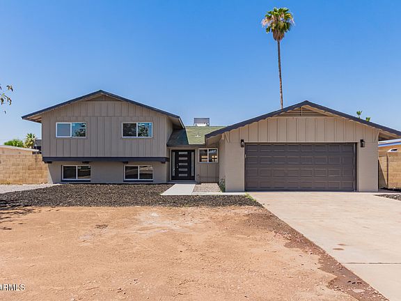 You'll love this BEAUTIFULLY REMODELED home with a SPARKLING POOL, located just minutes from Grand Canyon University and close to schools, shopping, dining, and freeway access! This stunning home blends modern upgrades with everyday comfort. Inside, enjoy fresh neutral tones, new ceiling fans, wood-look flooring, and abundant natural light. The spacious layout includes a versatile downstairs game/media room—ideal for entertaining or relaxing. The kitchen features stainless steel appliances, wine cooler, quartz counters, marble backsplash, blue cabinetry, and a waterfall island. The private main bedroom is downstairs with a walk-in closet and barn door. Enjoy a spacious, backyard with a covered patio, hot tub, and sparkling pool. Move-in ready!