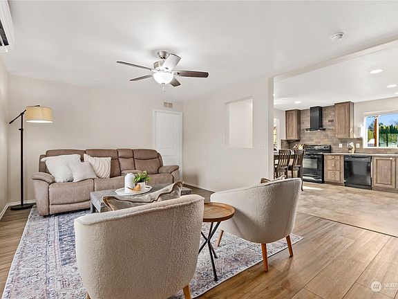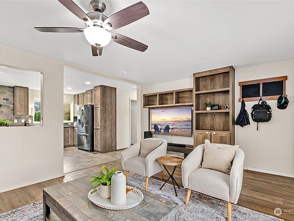 Welcome to this modern and meticulously maintained home situated on over an acre lot. This property boasts a flat and useable space, providing room for outdoor activities & potential expansion. Step inside to discover main level living with a fresh and modern interior, featuring clean lines and a contemporary ambiance, complemented by fresh paint throughout. The open floor plan seamlessly connects the kitchen and dining area to the living room, complete with built-in shelves, offering a versatile space for entertaining & everyday living. The primary bedroom is equipped with an ensuite and a spacious walk in closet. Located on a quiet, dead end street. Don't miss out on the chance to experience rural living just minutes away from Bellingham.
