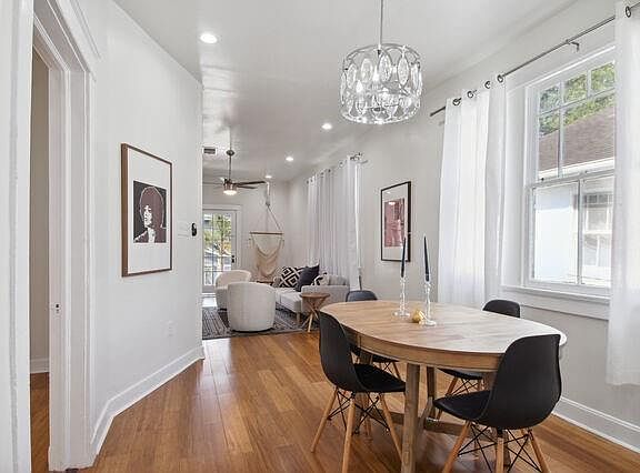 Recently renovated and generously sized, this 3-bedroom, 2-full bath upstairs apartment offers an open-concept kitchen and living/dining area. The kitchen boasts stainless steel appliances, marble countertops, a dishwasher, and an in-unit washer and dryer. Bamboo wood floors run throughout, and a charming rear courtyard enhances the home's appeal. A newly installed fortified roof adds peace of mind and long-term value. Ideally located just minutes from the University District, Broadmoor, Maple Street, Audubon Park, and the St. Charles Streetcar line this one is not to be missed.