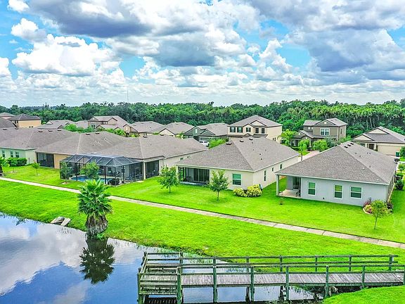 Stunning 4 bedroom 2 bath, lakefront home in this family friendly community! A beautifully constructed concrete block open floor plan home, featuring shiplap walls, 9ft ceilings with crown molding, hand scraped bamboo flooring in the bedrooms and living areas. Kitchen is perfect for entertaining with matching stainless steel appliances, granite countertops, a tiled backsplash, 42'' wood cabinets and a large center island. Enjoy the lake views from the main living area and the master bedroom with his & her closets and tray ceilings. The master bath offers a private toilet, 9ft long tiled shower with 3 shower heads a built in bench and a double sink vanity. Top it off and relax in your screened in back patio overlooking the lake. Community has docks, park and basketball court!