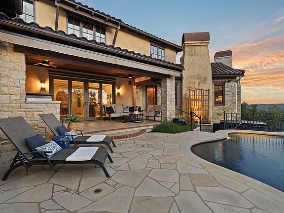 A rare stand-alone sanctuary in West Austin’s coveted Coldwater Canyon - one of only six homes in this private gated enclave. Set against a protected preserve, the home captures uninterrupted canyon views and breathtaking sunsets—just minutes from downtown Austin, the Arboretum, The Domain, and Lake Austin. Blending indoor comfort with outdoor beauty, the infinity pool and covered terrace frame sweeping hill country vistas and unforgettable sunsets, while thoughtfully designed features make outdoor living effortless. Retractable awnings and electronic solar screens allow year-round enjoyment, and a built-in BBQ makes entertaining a breeze. It’s more than a home—it’s a private sanctuary that has to be seen to be believed. Inside, soaring ceilings, rich mesquite wood floors, custom built-ins, and walls of windows highlight the dramatic landscape. The chef’s kitchen, with granite counters, double ovens, and a warming drawer, flows seamlessly into spacious living and dining areas—perfect for entertaining or everyday luxury. The main-level primary suite is a serene retreat, featuring a spa-inspired bath with marble floors, soaking tub, dual vanities, walk-in shower, and a custom-finished closet. Upstairs, three additional bedrooms, a versatile secondary living area, and a loft-style office with built-ins provide flexibility for family, guests, or a home office. Two gas fireplaces and timeless architectural details add warmth and elegance throughout. With its private-gated setting, preserved greenbelt backdrop, and meticulous construction by Sendero Homes, this residence is more than a home—it’s a retreat. A place where nature and luxury converge, and where every sunset feels like a private showing.