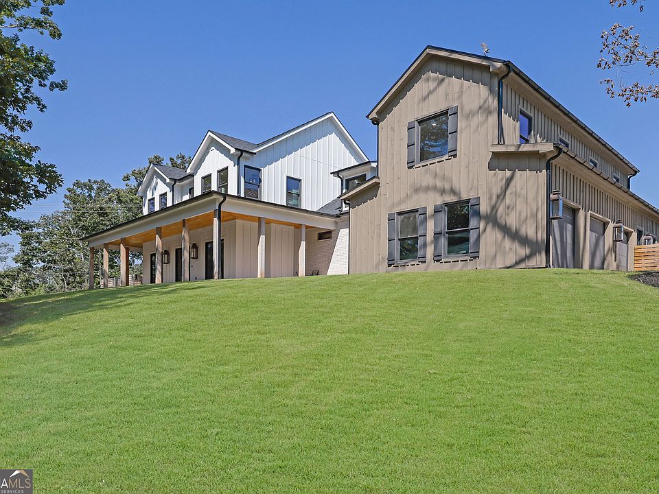 Looking for your own Oasis? This 5 Bedroom 5.5 Bathroom custom luxury home blends farmhouse warmth with European modern design inside and out. From the moment you arrive, the massive wraparound covered porch with gas lanterns, swing, and three sets of 8' custom iron doors set the tone. Inside, 8" European white oak hardwoods flow throughout. The dining room stands out with built-in cabinetry, textured wallpaper, and custom lighting, while the office offers a brick accent wall, abundant natural light, and a generous closet. The great room features a soaring fireplace finished in Italian porcelain up to the vaulted ceiling, a rustic wood mantle, and oversized windows. The gourmet kitchen is both striking and functional, highlighted by French medicine cabinets, Italian porcelain backsplash to the ceiling, and premium Smeg range and double oven. The oversized quartz waterfall island includes a composite sink and industrial Delta faucet. A separate butler's prep area adds leathered granite, beverage fridge, brick accent wall, and connects to a spacious walk-in pantry with wood shelving. Convenience continues with a laundry/mudroom attached to the 3+ car garage, featuring stone and butcher block counters, custom porcelain drop zone, and extra cabinets. This wing also includes a private guest suite with a full bath, perfect for visitors or a second office. The primary suite offers a true retreat with a dual rainhead porcelain shower, soaking tub, oversized floor tiles, dual vanities, and a massive walk-in closet. Upstairs are three additional bedrooms, a custom bath with oversized glass shower and dual vanities, plus two hidden rooms behind moving shelves, one serving as a tech hub and the other as a secret playroom. Over the garage, a private stairway leads to a huge flex space with a full bath, ideal as a media room, gym, rec room, or in-law suite. Step outside to a covered patio with a full outdoor kitchen, built-in grill by BBQ Boys, vent hood, and stone prep counters. An outdoor fireplace with TV mount makes it an all-season space. Beyond, the heated saltwater pool and spa with privacy fencing create a backyard oasis. Additional highlights include custom lighting and fans, tankless water heaters, three HVAC systems, built-in Sonos, low-voltage wiring, whole-house tech package, and attic storage. The oversized garage easily accommodates a boat, motorcycles, or ATVs. With Easy Access to HWY 400, Lake Lanier, Dawsonville Outelts, and The Cumming City Center, its no wonder why this home is The Perfect Oasis you have been looking for.