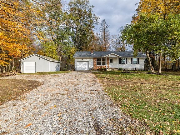 Set on 3 scenic acres with visible gaming trails, this beautifully renovated ranch offers the perfect blend of country charm and modern comfort. The property features an attached garage plus a spacious 22x24 pole barn, ideal for extra parking, storage, and a separate workshop area. Inside, the home has been thoughtfully updated throughout. Enjoy a newer A/C system, all-new flooring, a remodeled kitchen with quartz countertops and updated appliances, stylish new bathrooms, and modern lighting. A beautiful brick fireplace adds warmth and character, creating an inviting focal point for relaxing or entertaining. The large basement includes separate storage and laundry rooms and awaits your finishing touches to create additional living or recreation space. All appliances stay, including a second refrigerator and a freezer. You’ll also love spending time in the heated 3-season room, which expands your living space and offers peaceful views of the mature trees and abundant wildlife that surround your private 3-acre oasis. The property also backs up to land owned by the Historical Northern Ohio Railway, home to a museum, an added unique and noteworthy feature.
