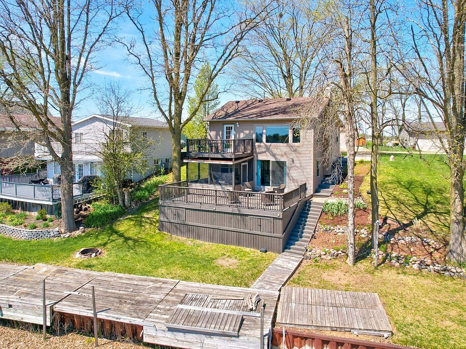 "Up north" cottage on Mangus, just two hours from Metro Detroit and not far from destinations in Gladwin, Midland, and state land! This 1,600 finished sq ft ranch is perched on the best part of Wixom Lake, with short-term rental potential or a quick 'home away from home'. Here, all the "pain points" of lake living are solved! The 30x40' pole barn has 200 amp service and a cement floor, along with three lots totaling over a half acre, which allow for plenty of storage and parking for guests. Its small footprint from the front deceives you, featuring a welcoming foyer with hardwood floors, large living room and balcony with sweeping, overhead views, and 2 bedrooms with a Jack-and-Jill lavatory on the main level. The walkout basement continues the hardwood floors and is the ultimate entertaining space with a huge deck, flex space for a family room or large dining room, and spacious kitchen with coastal stone backsplash detail. The full bath and laundry are conveniently located in the lower level for easy access after hanging out on the lake. Enjoy el fresco dining or quiet evenings in the screened-in porch! Updates include a whole house filtration system, updated windows, and well (2020). The plans to bring back the lake are in motion, but residents have made the most of the lack of water using it as a wildlife playground where deer and side-by-sides are the new norm. Get a jump on your vacation home before prices soar!